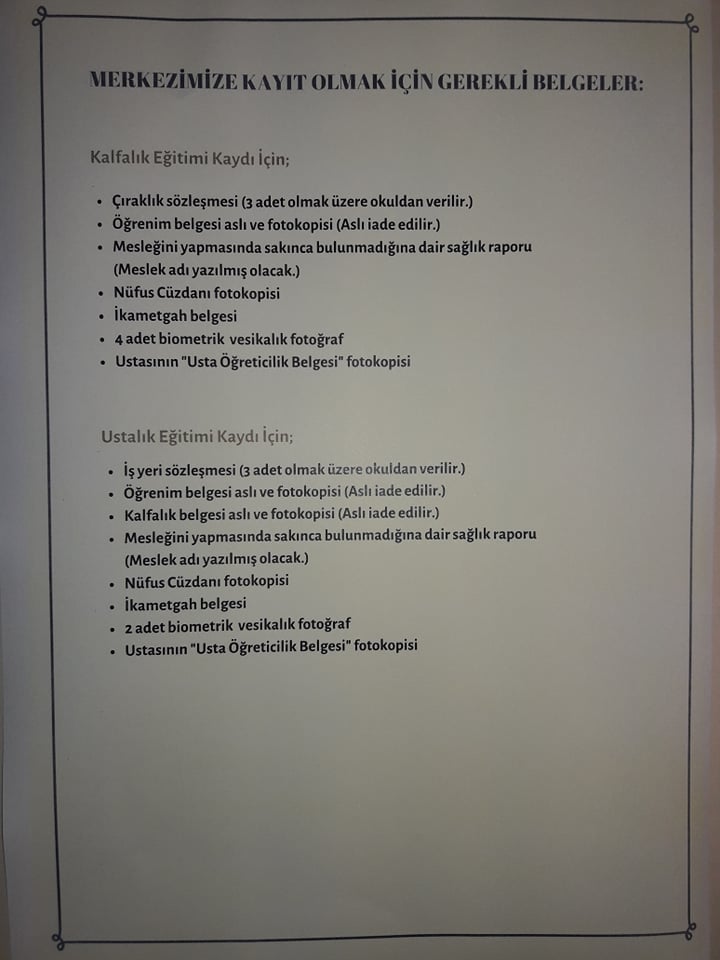 KALFALIK-USTALIK BELGE EDİNDİRME BİLGİLENDİRME